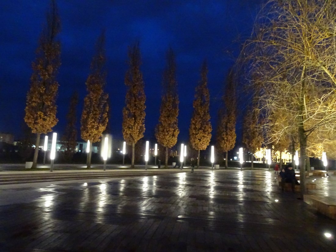 Парк возле стадиона «Краснодар» красив в любое время года, однако в эти дни, когда по вечерам он оживает тысячами огоньков и подсветок, начинается настоящая сказка. Вам мерещатся различные фигурки и тени от высоченных тополей, пирамидальных кипарисов, да и на небе появляются самые разные оттенки необыкновенной красоты. На этом месте, если помните мой летний пост, был прекрасный маленький бассейн. Любой желающий мог помечтать, наслаждаясь живописными ландшафтами. С середины декабря тут всё преобразилось. Деревья нарядили в светящиеся наряды, а сам стадион украсили огромными снежинками. Повсюду вас окружает сказочная иллюминация и ожидают приятные сюрпризы. На днях откроют и шикарный ресторан. Было уже поздно, но кадры снаружи получились вполне интересные, а в окнах отражались живописные пейзажи самого парка. Сергей Галицкий пригласил сюда перспективного и молодого шефа из Северной столицы. Теперь и краснодарцы смогут отведать так полюбившиеся питерские деликатесы. Сама обстановка здесь