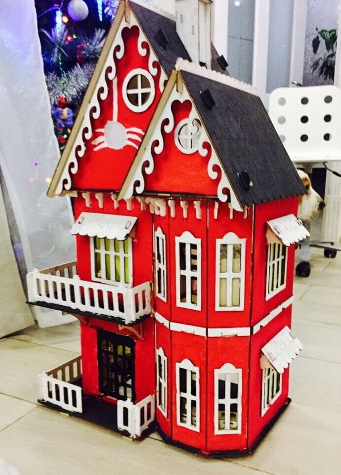 Доброго времени суток, друзья! Мою дочку зовут Олеся и ей 5 лет. Как и у любой девочки у неё полно кукол. Не было только пристанища для них. Она давно мечтала о большом домике, а я мечтал, чтобы они стоили не так дорого. Перед Новым годом наткнулся на рекламу одного из такого. Решил заказать и посмотреть на обещанное эко-дерево. Успели доставить до 31 декабря, так что подарок ждал ребёнка на Новый год. Собрали легко: без клея, без резки. Инструкция понятна и разборчива. Фанера качественная и не воняет. Я не разбираюсь в разновидностях дерева, но написали, что из берёзовой фанеры. Коробка может и не качественная, но зато стоимость приемлемая. С лицевой стороны дом закрытый, а с другой - в разрезе. В общем мне самому понравился. Дочка сразу взялась за покраску стен, полов, крыши. В общем обустроила весь дом. Подведём итоги: Думаю каждая маленькая девочка мечтает о домике, где она сможет играть с куклами. Домик довольно большой, крепкие соединения и что самое главное - не воняет. И дл