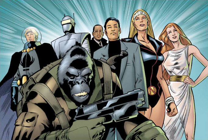 Агенты Атласа Участники и их суперсилы: 1. Человек-горилла 2. Человек-робот 3. Нэмора 4. Уранец 5.Венера 6. Джимми Ву Место прибывания: Храм Атласа в пещере под Сан-Франциско. История В 1965 году агент ФБР Джимми Ву создал команду Джи-Менов, чтобы освободить президента Эйзенхауэра изз лап суперзлодея Желтого Когтя. Десятки лет спустя Ву при помощи "ЩИТа" собрал новый отряд для раскрытия преступлений, совершенных таинственной "Организацией Атлас". Выяснилось, что руководитель "Атласа" План Чу - это и есть Желтый Коготь , прямой потомок Чингисхана. Он выбрал Джимми своим предшественником и все годы сражался с Ву, чтобы закалить его в боях и передать ему бразды правления. Герой был шокирован этим открытием , но все- таки согласился возглавить "Атлас" и направить все его ресурсы на борьбу со злом. Желтый Коготь, оставив свой пост, добровольно отправился на съедение своему советнику - дракону Мистеру Лао. Темное Правление Во врем Секретного Вторжения Агенты Атласа вместе с остальными суп