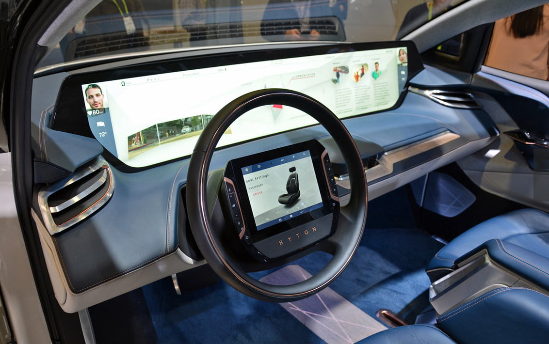 Байтон, это относительно неизвестный китайский стартап, который представил свой первый концепт-кар на выставке Consumer Electronics Show (CES) в 2018 году. Он вернулся на CES в 2019 году, чтобы показать новую версию своих исследований в полностью электрическом дизайне, которые близки к запуску в производству. И, что удивительно, некоторые ключевые особенности, которые отличали концепт от реальности, не претерпели существенных изменений. «Byton M-Byte представляет собой превращение традиционного автомобиля в интеллектуальное устройство следующего поколения для каждого пользователя», - сказал генеральный директор и соучредитель компании Карстен Брайтфельд во время презентации. Компания больше заинтересована в революционной информационно-развлекательной технологии, чем в предоставлении непревзойденной управляемости или повышенной мощности. С этой целью M-Byte выйдет в производство с самым большим автомобильным дисплеем, когда-либо установленным на серийном автомобиле. Это 48-дюймовый изо