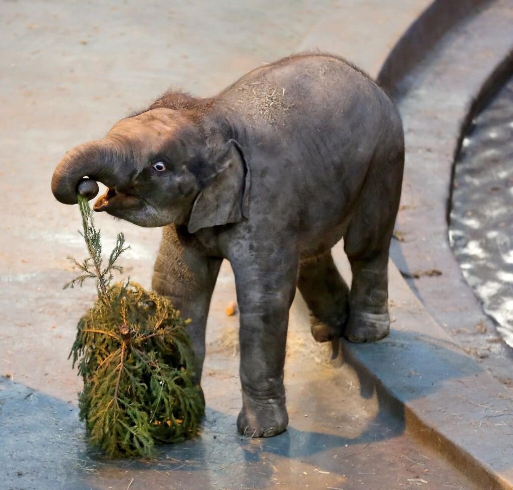 Колючие игрушки: обитателям зоопарка подарили более 1000 ёлок