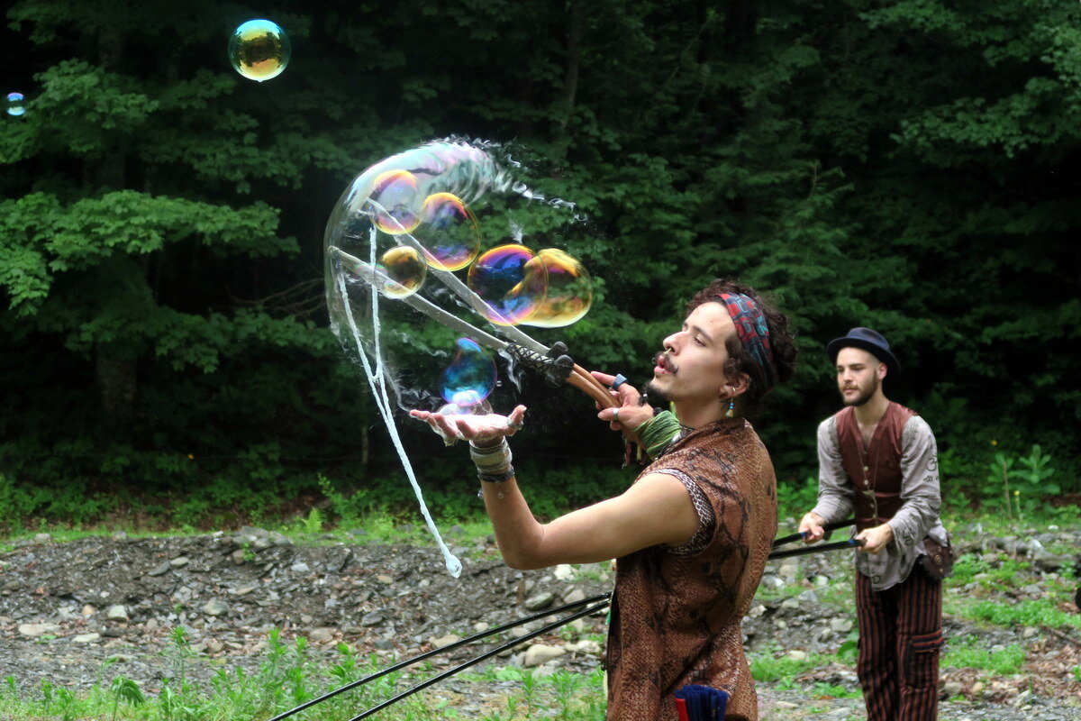 Увидел вчера перформанс очень крутых ребят, и спешу с вами поделиться. Лично мне ничего подобного раньше не попадалось. Это была труппа, которая вытворяла маловероятные вещи с мыльными пузырями. Причём немалую часть эффекта произвёл необычный образ и удивительная харизма шоумена.