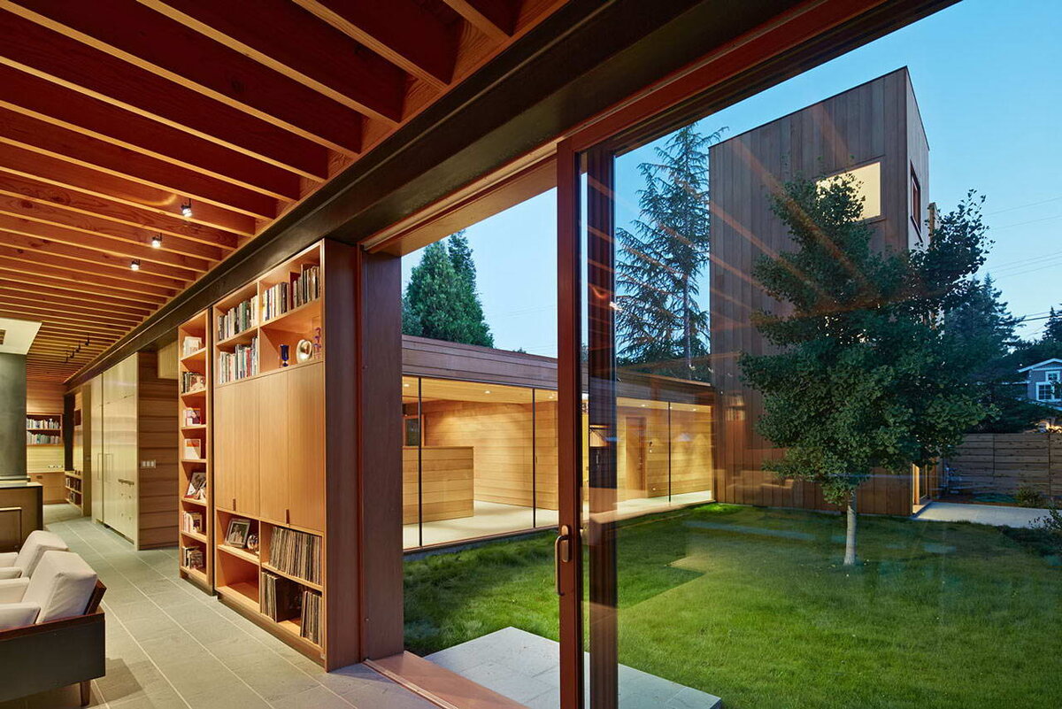 Этот современный загородный дом предназначен для одного человека и его гостей. Одноэтажный дом имеет крестообразный план, в центральной части находится светлая общая зона с приватным садиком, в длинных крыльях — спальня и гараж. Трёхэтажная башня с видовой площадкой на плоской крыше предназначена для размещения гостей. Дом, за исключением металлического каркаса, выполнен в деревянных конструкциях. Название: Резиденция на Коттон Стрит (Cotton Street Residence)