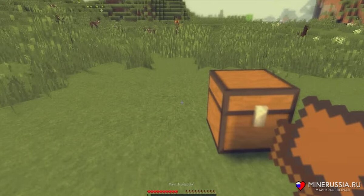 «Chest Transporter» добавляет одну небольшую, но очень полезную вещь в Майнкрафт: инструмент для переноски сундуков. Теперь, когда вы захотите переместить вещи из старого дома в новый, вам больше не придется вручную перемещать все предметы. Вы можете просто взять свой сундук, заполненный кучей предметов, и перенести его. Скачать мод: https://minerussia.ru/chest-transporter/