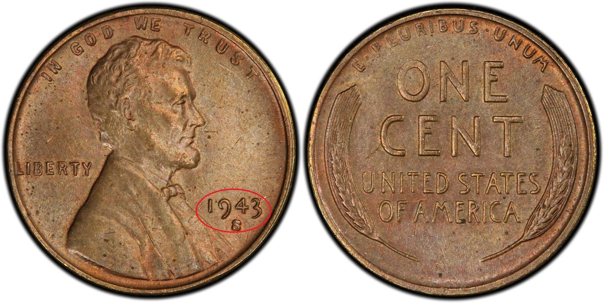 Одна из уникальных одноцентовых монет 1943 года, была в 1947 году получена на сдачу в школьном буфете Доном Лютесом младшим. Нумизматы, прознавшие о его находке, буквально охотились на его находку, но владелец оказался непоколебим и сохранял ее у себя. Озадаченный таким интересом со стороны коллекционеров Дон Лютес младший даже сделал запрос о данной монете в Министерство финансов США, но получил лаконичный ответ, что медный цент 1943 года никогда не выходил в обращение. И действительно, власти США долгое время отрицали существование данного раритета, что только порождало дополнительный интерес коллекционеров и охотников за сокровищами. Сегодня фактически известно о 12 медных центах 1943 года. Хотя по различным данным всего было отчеканено 40 центов данного вида на монетных дворах Филадельфии, Сан-Франциско и Денвера. Редкость данной монеты обусловлена Второй Мировой войной. Правительство США посчитало, что медь, которая использовалась для изготовления одноцентовых монет, целесооб