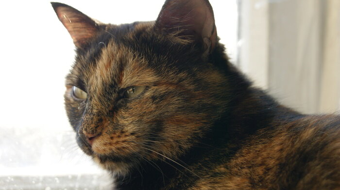 Десять лет назад моя мама работала в одном сетевом магазине на фасовке, сетка не большая, фасовочные «цеха» были при каждой «точке». Приблудилась кошка, обычно их все гоняли, но её прогнать рука не поднялась, просто скелет обтянутый кожей – без слез не взглянешь, и матушка подоброте душевной начала её кормить, а та в ответ притащила своих трех котят… Начальство прознав об этом потребовало выгнать всех иждивенцев, их можно понять: нормы СанПиН никто не отменял, изловчившись вместе с охранником, моя пожилая матушка привезла их всех к нам домой, «на радость» двум кастрированным котам и собаке. Все были проверенны у ветеринара и вылечены в течении двух долгих месяцев, от чего не совсем ясно, ответа мы так и не получили, воспалительный процесс купировали болезненными уколами, но все таки кошачье племя выздоровело. Котята разошлись по добрым рукам, но во взрослой кошке они не нуждались. Так и осталась он у нас, назвали Семёновной, в честь того охранника, сокращенно Сёма или Сёмга.