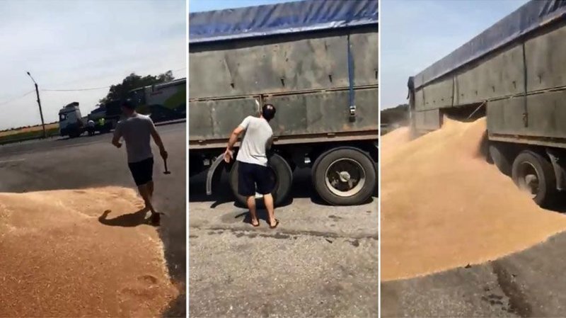 Водитель зерновоза высыпал весь груз, чтобы не платить сотруднику ДПС