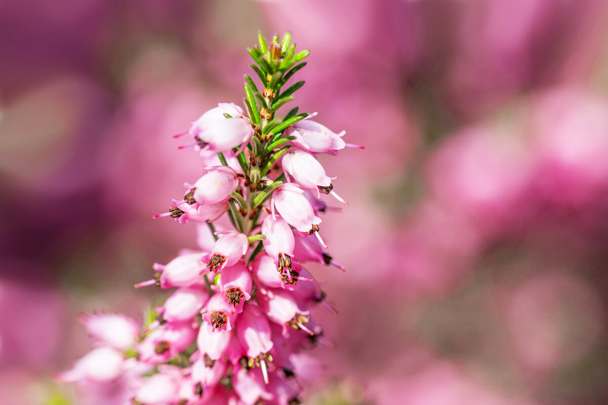 Вереск – древнее растение, уже обитавшее на планете в послеледниковый период, сейчас является национальным цветком Норвегии, а родиной его считаются болота Шотландии. Высота кустика – 30-50 см всего, очень декоративен – мелкие листочки, мелкие розовато-лиловые цветочки. Цветет растение с середины весны до середины осени, в природе вересковые поля просто очаровательны. Уникальное растение встречается там, где больше практически ничего не может расти. Это древнее растение отличный материал и для ландшафтных работ – он прекрасен в сочетании с другими ярко цветущими цветами в клумбах, рабатках и миксбордерах, да и дома можно его выращивать и пользы от него много. К сожалению, вереск тоже нуждается в заботе человека, чтобы не исчезнуть с лица Земли. В саду и дома уход за вереском схож – он любит бедные и немного кислые почвы, много воды, но с хорошим дренажом, и главное – солнечное место. Очень хорошо вереск реагирует на обрезку – примерно на треть можно укорачивать, главное – не стоит
