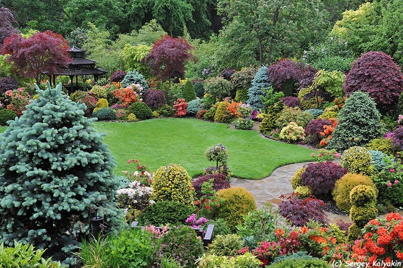 - Мало. Есть, например, растущие рядом азалии с желтыми и золотистыми цветками. Но по нашему опыту, если посадить рядом два краснолистных японских клена, они не будут смотреться хорошо вместе. Глаза отдыхают на зеленом.