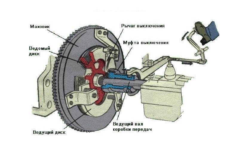 Автомобиль - это целый комплекс разнообразных систем, узлов и агрегатов, направленный на то, что бы довезти человека в нужную ему точку. В техническом устройстве автомобиля не бывает бесполезных деталей, каждая вещь продуманна и важна. Но сегодня мы поговорим о важнейшем механизме в автомобиле - речь пойдет о сцеплении. Что такое сцепление? Сцепление - это механизм, предназначенный для передачи крутящего двигателя к коробке передач, а также плавного соединения и разъединения двигателя механизмами трансмиссии. С его помощью можно начинать движение автомобиля, переключать передачи, останавливаться с работающим двигателем. Также сцепление предохраняет детали двигателя и трансмиссии автомобиля от повреждений и перегрузок при быстром включении передач и резком торможении. Основные детали механизма сцепления: 1)Маховик коленвала 2)Нажимной диск (ведущий) 3)Ведомый диск Принцип работы механизма сцепления Принцип работы сцепления автомобиля заключается в плавном соединении и разъединении межд