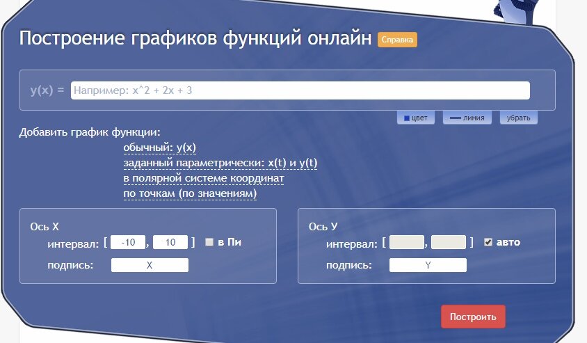 Данный сервис будет интересен как студентам, так и школьникам и даже учителям. Не всегда мы можем сразу понять, какой график функции задан, а так же для того,чтобы представлять,как выглядят различные графики мы можем воспользоваться данным сервисом. Вот так вот выглядит окно для ввода данных при первом попадании на сайт. В принципе уже можно вносить данные и пользоваться сервисом, но не все знают как написать значок квадратного корня или же как возвести число в степень. Для этого предусмотрена подсказка - справка. Построить график методом координат по заданным точкам (7; 1); (7; 9); (6; 8); (4; 10); (5; 12); (4; 12); (3; 17); (7; 19); (9; 16); (9; 22);