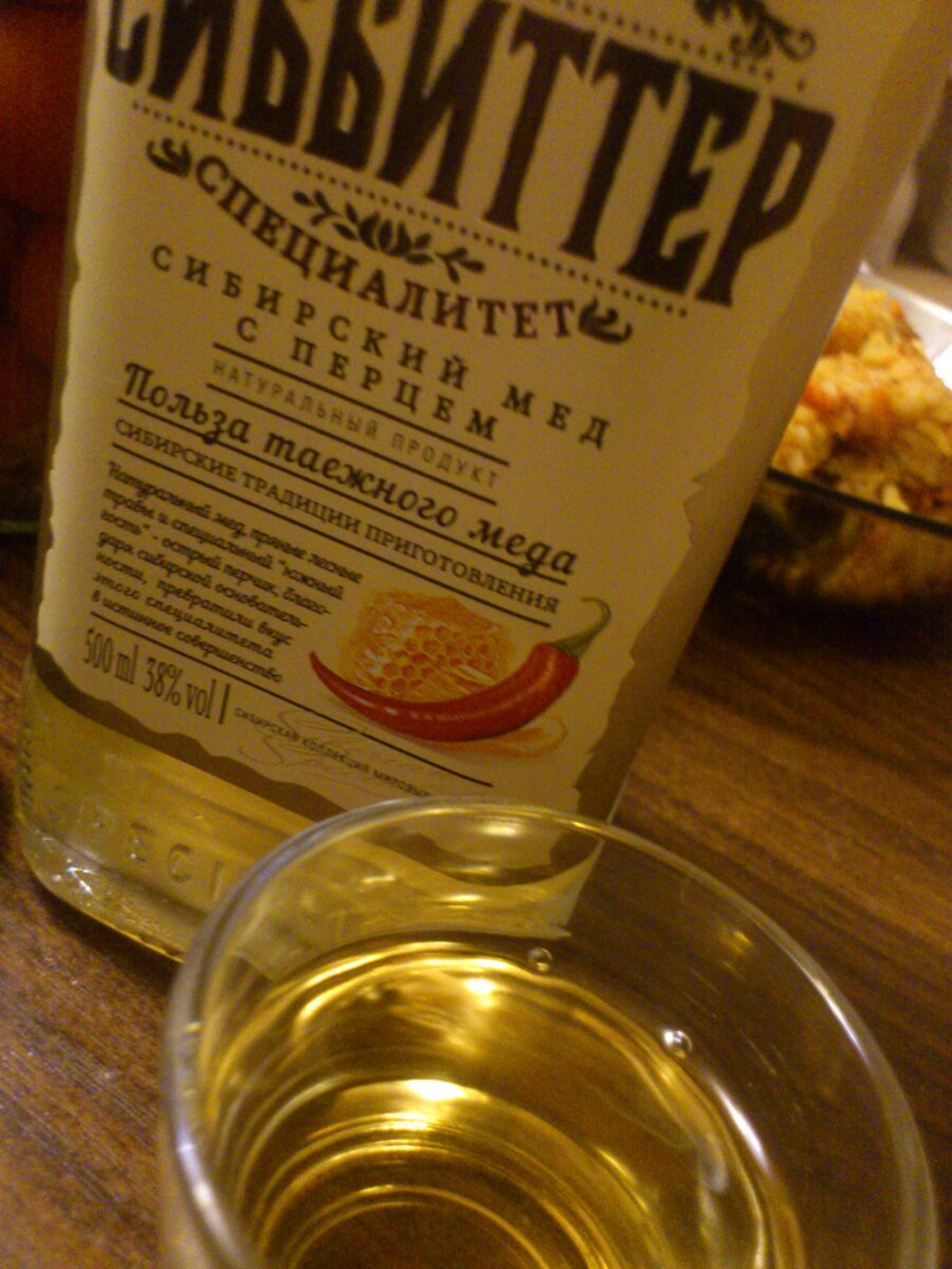 Написанное ниже является субъективным оценочным суждением автора. Употребление алкоголя не рекомендуется и вредит здоровью. Наконец-то удалось найти время и место для опробования разновидностей, как это принято называть, "бюджетного" Сиббитера. Для начала расскажу о варианте "Сибирский мёд с перцем". Не будут рассуждать об особенностях именно сибирского мёда, так как не знаю их, но сразу скажу, что концентрация и мёда, и перца близится к гомеопатическим. Об этом говорит также цвет. Данная алкожидксть - бледно-жёлтого цвета, прозрачная. Аромат трав и мёда можно уловить, если предварительно прочитать этикету и знать, что улавливать. Доводилось пробовать водки с гораздо более насыщенным вкусом мёда с перцем, но они нравились не всем. Производители этого Сиббитера, думается, хотят угодить вкусам большинства, а потому не усердствуют ни с перцем, ни с мёдом. Крепость - 38%. Не 40, что часто бывает с подобными алкожидкостями. Но, несмотря на околосреднюю цену, качество очистки спирта остаё