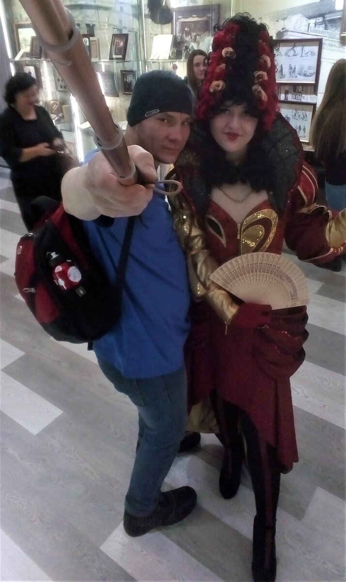 Предсказание умной гусеницы не сбылось Чеширский кот так и не упал а так хотелось поймать кота за хвост )))) Сегодня второй раз посетил Литературный музей и попал в сказку. На первом этаже музея встретил Шляпника, который предлагал поиграть с ним в шахматы, но шахматы игра не для меня, потому отказался. После встречи со Шляпникам я попал на чаепитие Кролика где Алиса угостила меня чаем. А пока пил чай Алиса подкравшись сзади надела на меня корону и сказала на ушко "не подглядывай что на ней написано". Недопив чай и взяв его с собой, отправился на вторую лже конференцию, где было много лживых докладов и даже музыкальный доклад. По итогу конференции было голосование за лучший доклад. Мой голос помог занять первое место докладу о норе кролика. Но самым ярким событием была моя встреча с красной королевой !!! Королева Вы самая восхитительная из всех королев. А ещё я смотрел фильм про Алису на английском языке и даже получил приз из рук сестры Алисы за участие в бродилке. Литературный музей