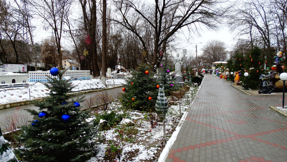 Представляете, здесь до сих пор цветут розы! Вот честно, ни разу в жизни не видела, чтобы рядом с новогодней елкой росли розы! Настроение еще лучше, хоть танцуй!