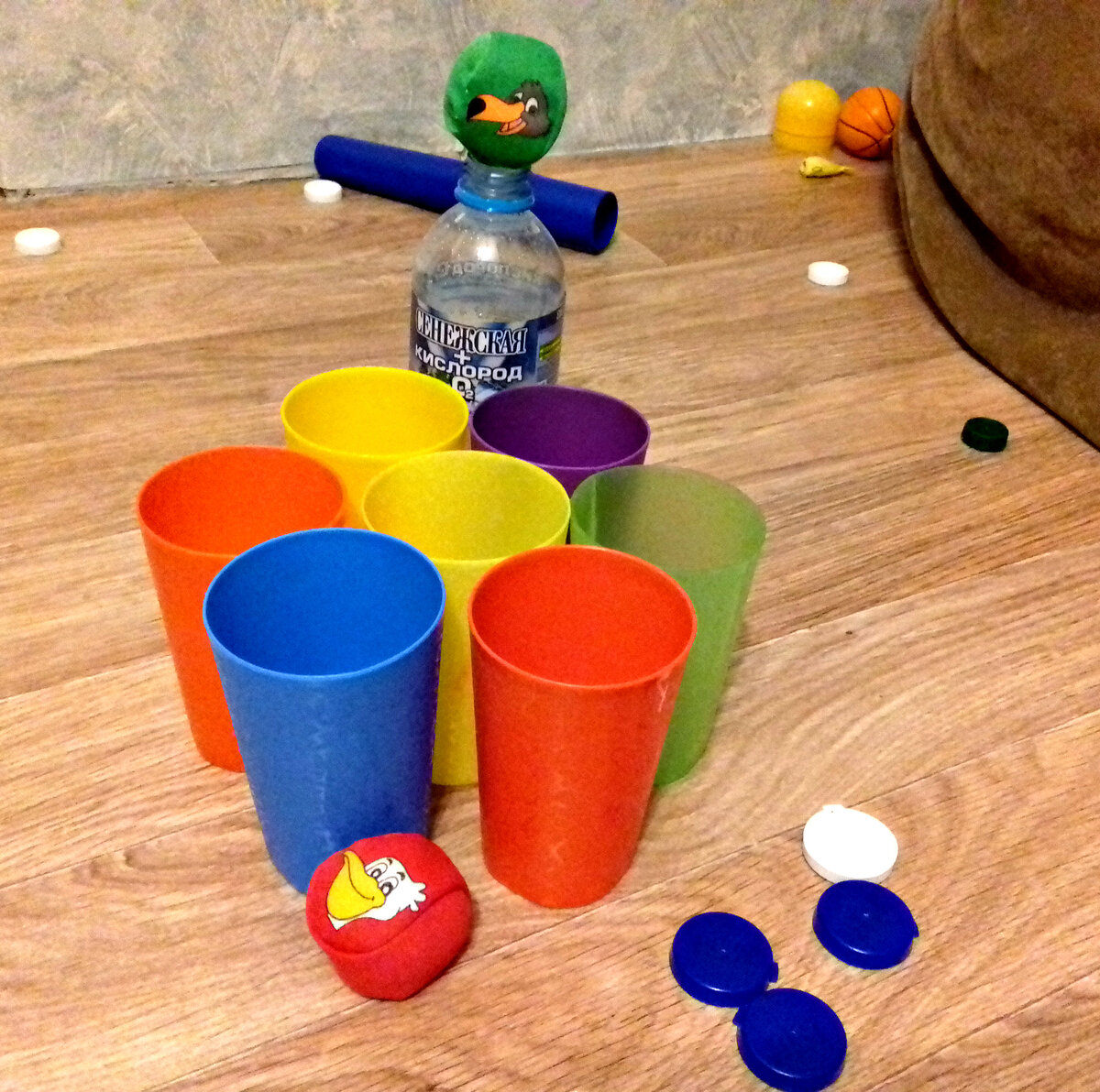Постоянно слышу от мам малышей, что ребёнку нравится играть с самыми обычными предметами гораздо больше, чем с только что купленной или подаренной новой игрушкой. Кому-то нравятся шуршащие пакеты, кому-то булькать слегка наполненной бутылкой воды. С пакетами , стаканчиками, бутылочками можно придумать множество увлекательных и полезных для развития игр. Рассмотрим некоторые из них. Они направлены, главным образом, на развитие мелкой моторики и координации движений, но также развивают: меткость, упорство, умение достигать цель, мышление, общую моторику. №1. Игры со стаканами. Нам понадобится: пластиковые стаканчики, пластиковые крышки, небольшие мячики. Мы взяли цветные пластиковые стаканчики из Пятёрочки и пластиковые различные крышки : от воды, соков, молока, имунеле. Разные - потому что у них различны вес, форма, диаметр, а значит и летают они по-разному. 1). Стройте из стаканов различные башни (см.фото). У кого интереснее, выше, разнообразнее получится башня? 2). Когда надоест прост