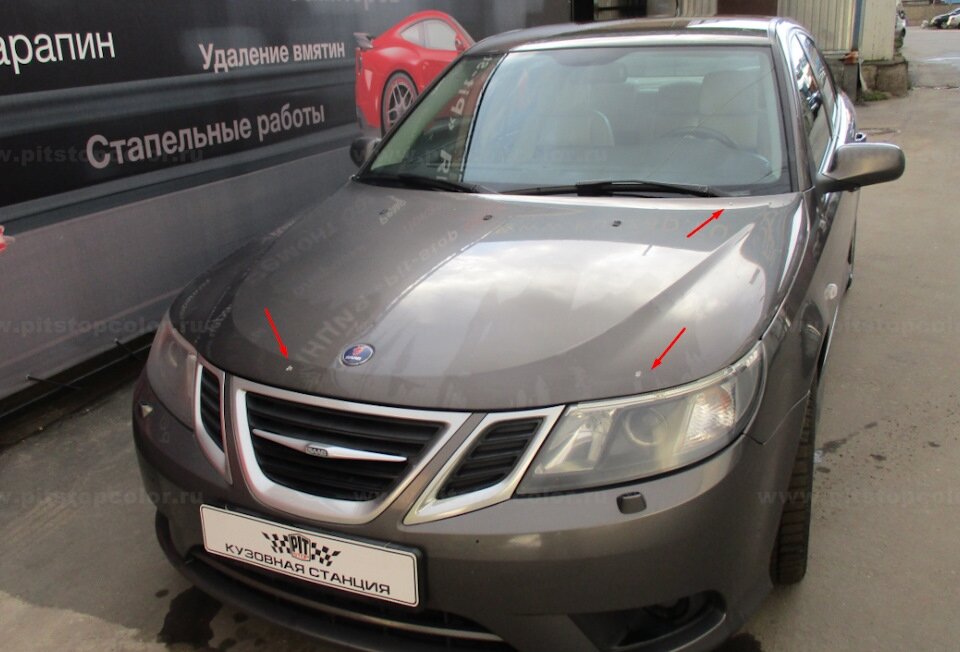 Предлагаем Вашему вниманию фотообзор по кузовному ремонту а/м Saab 9-3. Автомобиль этой серии производился с 1998 года по 2014 год. Разумеется, что за эти годы данная модель претерпела не мало определённых изменений и обновлений. Одна из обновлённых версий 9-3 вышла в свет в 2008 году. Наш экземпляр именно этого года выпуска. Но, несмотря на рестайлинг, продажи марки Saab падали, а производство этой машины было и вовсе приостановлено. Возможно, именно по этой причине владельцы моделей Saab 9-3 с определённым трепетом относятся к состоянию своих, уже ставших историей, автомобилей. Вот и наш клиент, не желая расставаться со своим любимцем, решил привести его кузов в отличное состояние. Следы коррозии на задних крыльях и капоте — это последствия сколов и глубоких царапин. А вот о причинах этого очага даже мы немного призадумались…)) Конечно, бывает всякое: куски лепнины с фасадов отваливаются, "хорошо воспитанные" граждане бросают с балконов "всякую всячину", сосульки, град, метеориты па