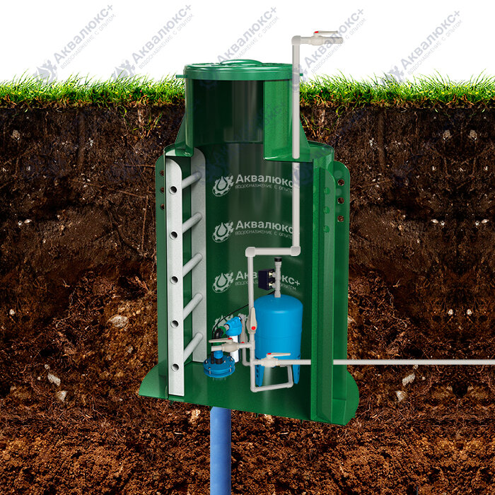 Кессон – это специальная емкость, которую зарывают в землю и устанавливают непосредственно над скважиной. Внешне он выглядит как бочка или прямоугольная коробка с горловиной. Снаружи емкость закрывается крышкой от люка. Как правило, кессон утепляют пенопластом. Максимальное распространение приобрели цилиндрические кессоны с диаметром основания 1 м и высотой около 2 м. Устройства меньшего размера не способны вместить все необходимое оборудование. Емкости более крупных габаритов обладают и более высокой стоимостью, что вызвано расходом большего количества материала. Функции кессона Кессон одновременно выполняет несколько важных функций. Это защита скважины от проникновения грунтовых вод и промерзания в зимний период. Очень полезной дополнительной функцией является размещение внутри него необходимого оборудования. Это позволяет сэкономить место в жилом доме и очень выручает при отсутствии такового. Крышка кессона закрывается на замок. Поэтому о сохранности техники можно не волноваться. Р