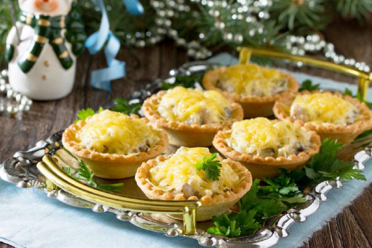 Тарталетки с жульеном, шампиньонами и сыром - вкуснейшая закуска