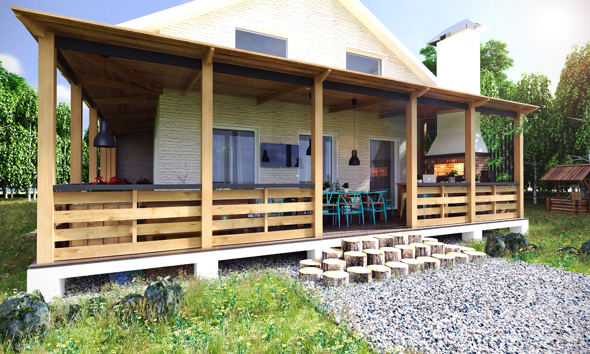 Для веранды в частном доме подойдут такие варианты дизайна: