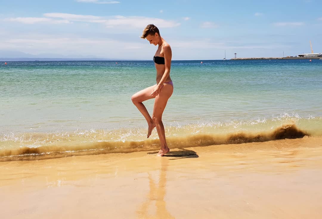 Но волны есть даже на самых спокойных пляжах. И к ним частенько еще прибавляется прохладный ветер, который не только тебя морозит, но и заставляет пробовать песок на вкус, и делает твою прическу такой, какой он считает нужной.
