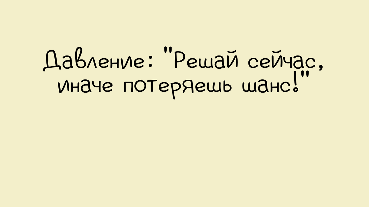 Давление: "Решай сейчас, иначе потеряешь шанс!"