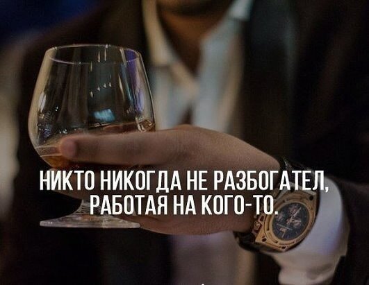 Моя любимая тетя всегда работала. И работала она всегда очень много. А была она прессовщицей, на одном из наших машиностроительных заводах. Работала на совесть, 25 лет отдала она своему предприятию и юность и молодость и девственность. Даже с гордостью показывала грамоту. Клочок бумаги ..... Нет больше у меня тети. Прах и тлен разлетелся по миру, забылось все ... И не кто не вспомнит, и ничего не осталось за душей. Это жизнь? Это свобода? Нас всегда учили и готовили для работы на государство, на богатого дядю или тетю. Настало время взглянуть правде в глаза - работая на кого то ты никогда не добьешься настоящего результата. Вечная нехватка денег, жалкое существование. У тебя есть дом или квартира, машина или даже катер, но ты раб своей необходимости. Очень малое число людей могут позволить себе выбраться из этой западни. Даже хозяева бизнеса и те приходят в свои конторы, приходят на работу. Чувствуют тяжесть бремени несвободы. Наверное каждый задумывался сколько времени мы тратим на