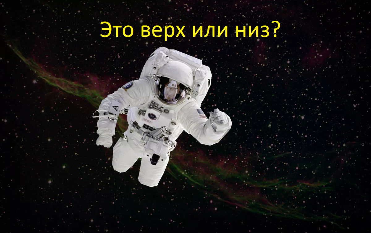 Никогда не задавали себе такой вопрос? А ведь в космосе всё по другому, и понятие верх - низ лишь условное. Если сказать короче, то в космосе нет такого понятие как верх и низ. Верх и низ это то, что обозначил человек. Космос бесконечен, хаотичен, и скорей всего мы определяем верх и низ в космосе условно. На сам деле этот верх мог оказаться и низом, а низ верхом, или право верхом а низ левой стороной. Слишком сложно? Но космос он такой. Понятие верх-низ появляется лишь тогда, когда появляется наблюдатель, в данном случае это мы. Другие существа могут лететь вверх ногами, но считать что низ нашей земли, это верх, и на самом деле это не их корабль перевёрнут, а наша Земля такая. То есть люди сами создают понятие верх низ, понятно где мы его обозначим на Земле, небо верх, где люди низ, но правильно ли мы обозначаем где верх у космоса, может это не верх а низ! Если космонавт окажется в далёком космосе за пределами солнечной системе, он может лететь верх ногами относительно корабля, но при