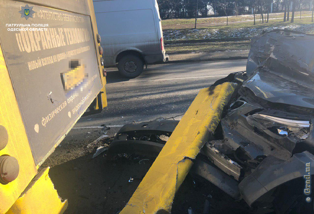 Сегодня на Николаевской дороге столкнулись маршрутный автобус и два легковых автомобиля. Согласно информации Патрульной полиции, около 13.20 водитель автомобиля БМВ не выдержал безопасную скорость и дистанцию, в результате чего совершил столкновение с автобусом. От удара автобус откинуло на впереди стоящий автомобиль Мазда. В результате происшествия за медицинской помощью обратились три пассажира маршрутного автобуса. Обстоятельства ДТП будут установлены в ходе следствия. Подробности на сайте Телерадиокомпании