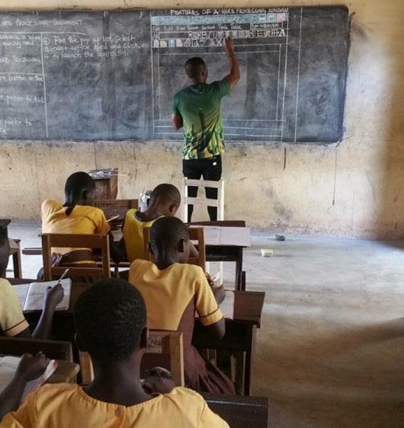 Преподаватель из Ганы учил школьников пользоваться Microsoft Word по рисункам на доске
