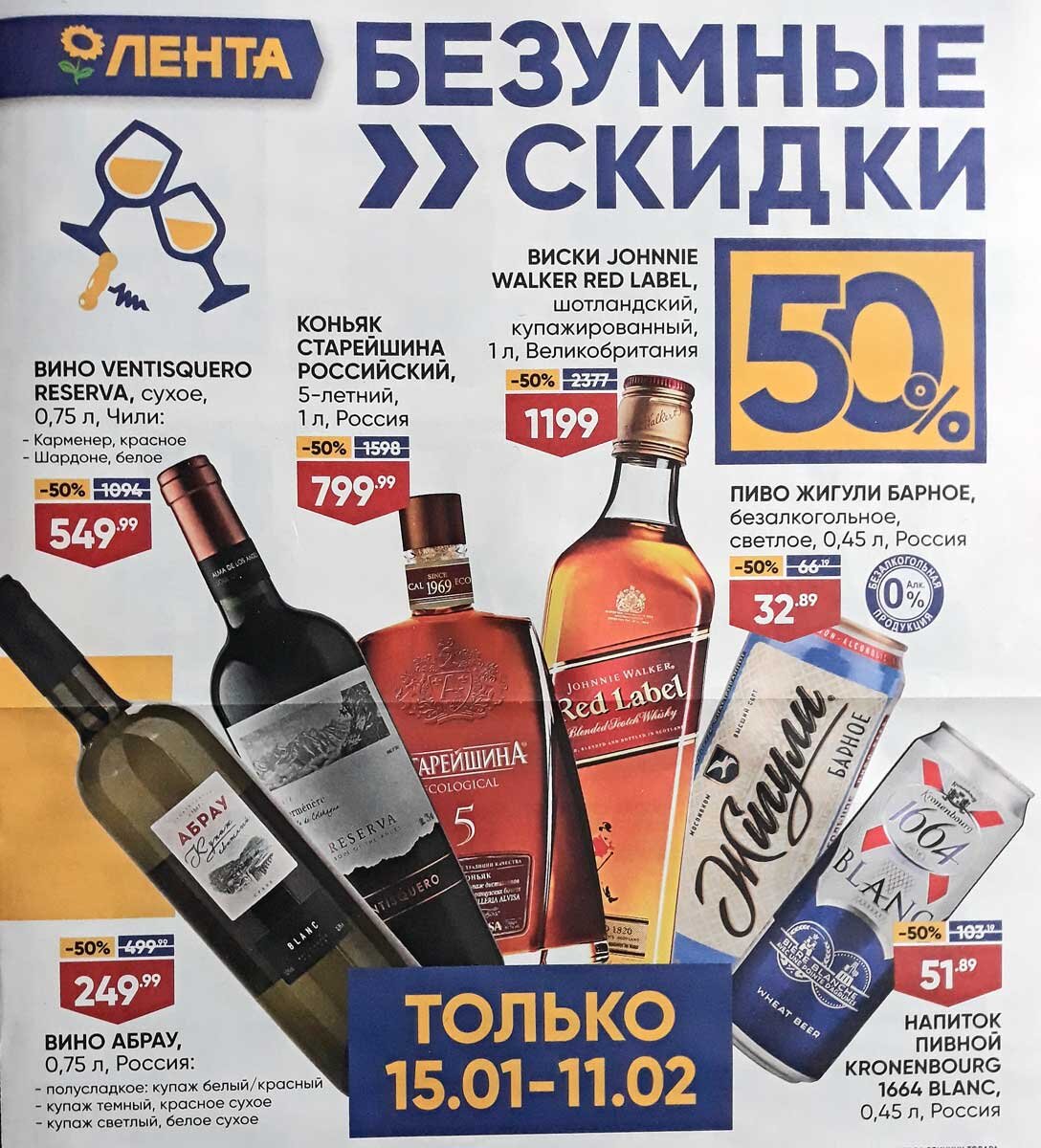 Еще есть российское вино на последней странице, скидка 40% -