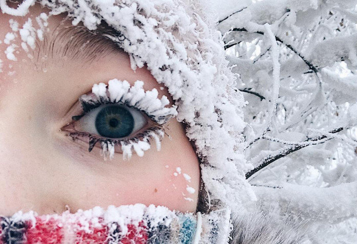 Зато в сильный мороз ресницы покрываются снегом. Девушки с таким "макияжем" похожи на сказочных снегурочек. На морозе все дубеет так, что даже обычным бананом можно забить гвоздь в дерево.