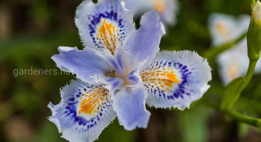 Они образуют веера, похожие на мечи, и маленькими, нежными, бахромчатыми, как у орхидеи цветами беловато-голубого окраса с сиреневыми, темно-синими и оранжевыми отметинами. Они выглядят эффектно по краям дорожек и в тенистых частях сада.