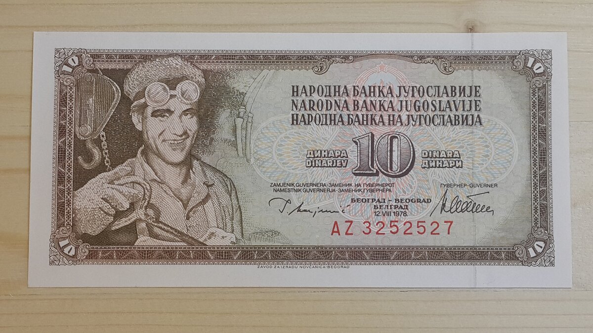 Продолжая освещать тему банкнот Югославии 1966 года выпуска, представляю следующую банкноту из своей коллекции - 10 динаров образца 1968 года Конкретно моя банкнота 1978 года выпуска. Банкнота в состоянии Press(UNC) Выпускались данные банкноты до 1981 года. Материал - бумага. Печатались в типографии Института Производства банкнот и монет – Топчидер (Topcider), Белград .Печать выполнена в коричневых тонах,водяные знаки отсутствуют.