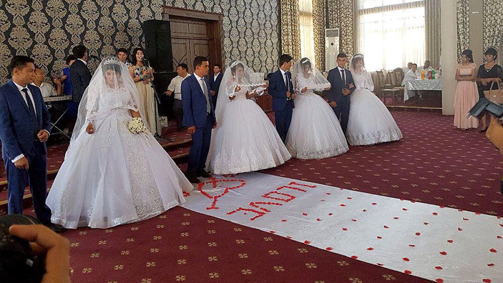 В Узбекистане большие семьи , Часто дети по годки. Когда сыновья по годки вырастают,очень часто им стараются с играть свадьбу одну на двоих, в целях экономии. Как это происходит, сваты к невестам которых родители подобрали ,идут в разное время. Подарки которые полагается дарить невестка будущим, стараются покупать одинаковые. Во время свадьбы чтоб молодые поехали в загс и погулять, заказывают одинаковое количество автомобилей. Когда время приходит забирать невесту для этого заказывают два автобуса, и родственницы женихов должны разделится кто за кем поедет.В месте с женихом и его друзьями. Погуляв на стороне невесты, жених и его друзья, и родственники собираются домой, и забирают невесту. С невестой обязательно едут ее родственницы, это может быть тети, или старшие сестры. Когда невест привезли к жениху ,там начинается свадьба, где жених и невеста сидят за столом. И когда женятся сразу два сына, то их столы ставят либо чтоб они смотрели друг на друга, или на одной стороне за одним б