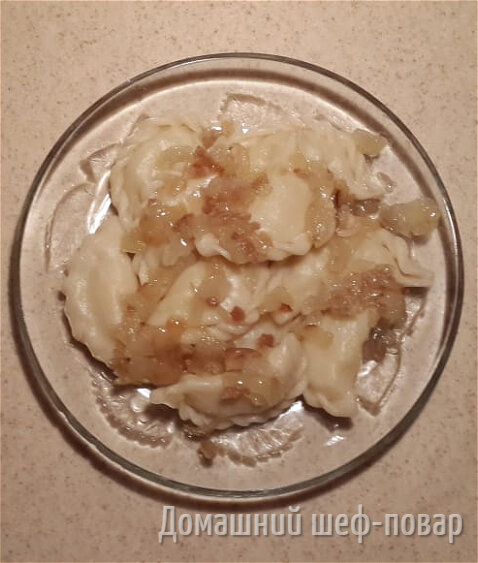 - соль 6-7 гр И так, приступим к приготовлению наших вареников. Для начала нарезаем сало и лук тоненькой соломкой и начинаем обжаривать. Сперва жарим сало затем добавляем лук и доводим его до золотистого цвета. Параллельно поджарке, я поставил вариться картофель. Соль мы добавляем по вкусу. После того как картофель сварился, делаем из него пюре и добавляем нашу поджарку. Все очень просто и быстро, н