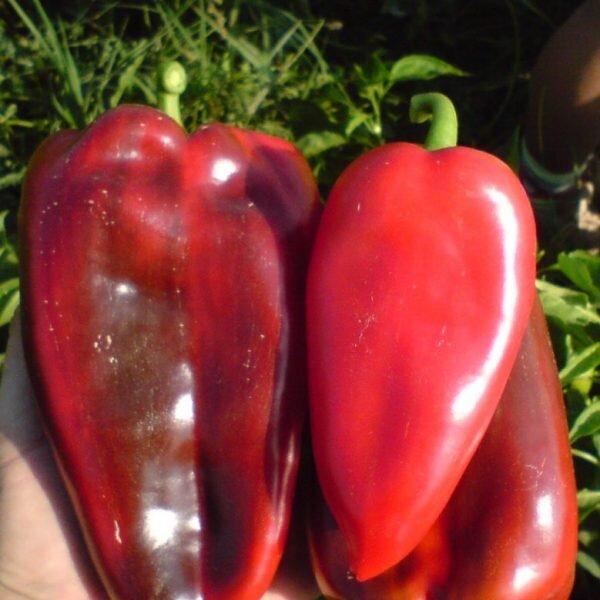 Именно так я оцениваю сербский сорт сладкого перца Паланичко чудо (PALANACICO CUDO) . В прошлом сезоне видела его в теплице у своей приятельницы, нынче буду выращивать и сама – семена получила из двух надежных источников. Что мне понравилось в этом сорте? Конечно же, внешний вид. Крупные (длиннее ладони!), остроконической формы перцы насыщенного зеленого цвета переходящего в стадии зрелости в красно-пурпуровый. На разрезе вид не менее привлекательный – толстые, более 1 см стенки, небольшая семенная камера. Вес плодов достигаем 400 г. Второй важнейший фактор – вкусовые качества. Очень сладкий и сочный, я бы сказала мясистый. Приятный перечный аромат. Этот тот перец, у которого отличный вкус как в технической стадии зрелости, так и в зрелом виде. По отзывам тех, кто уже выращивал этот перец – он идеален для лечо. Третий фактор – урожайность. Завязей так много, что для получения выровненных по размеру плодов желательно удалять часть цветков. Кусты невысокие (45-70 см), страдают от пере