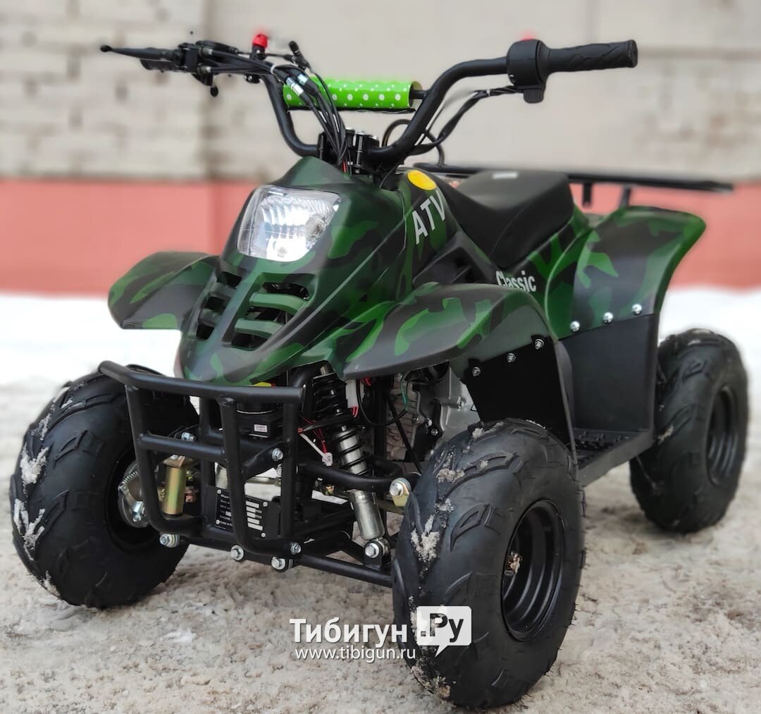 Перед Вами довольно интересная модель детского бензинового четырехтактного квадроцикла ATV Classic 6 (110 кубов). Транспорт выполнен в классическом утилитарном стиле в сочетании с плавными элементами, делающими корпус более гладким и литым. В конструкции нет ничего лишнего - только достойный функционал, для качественной поездки по городу или бездорожью на дачной территории. Одноцилиндровый двигатель, мощностью в 5 лошадей и объемом в 110-ть куб.см разгоняет аппарат до предельных 40 км/ч в считанные секунды. Прочная стальная рама, металлический отбойник, закрытые платформы для ног, надежные амортизаторы и чувствительные дисковые тормоза спереди и сзади - все сделано надежно и на совесть, чтобы ребенку было легко справиться с управлением, катаясь с комфортом. Так как квадрик имеет возрастную группу 4+, а его скоростные возможности велики, следует использовать специальный ограничитель, выставляя минимальную скорость при первых поездках. Максимально допустимая нагрузка на издел