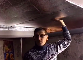 Шаг #1. Прикрепили на потолок Изолон, степлером, аккуратно как обои, есть у него желание уйти в сторону.
