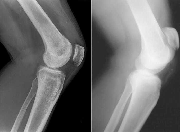 Травма надколенника: признаки и принципы лечения Ушиб или перелом надколенника (или коленной чашечки) – довольно частая травма у детей, активной молодежи и спортсменов. Основная роль коленной чашечки заключается в усилении разгибательной функции четырехглавой бедренной мышцы. Травмы коленной чашечки сопровождаются разными неприятными симптомами и существенно ограничивают подвижность пострадавшего. Обязательно надо показаться травматологу или хирургу. Травма нуждается в лечении и наблюдении у специалиста, т. к. при отсутствии адекватной терапии, пострадавший рискует получить осложнения и утратить природную подвижность коленного сустава. Признаки травмы надколенника: В зависимости от локализации переломы подразделяют на следующие виды: Горизонтальный – коленная чашечка раскалывается на две части. Вертикальный. Этот вид перелома встречается чаще всего. Похож на продольный, но линия разлома вертикальная. Краевой – фиксируют в том случае, когда от стенки кости отделяется небольшой фрагмент.