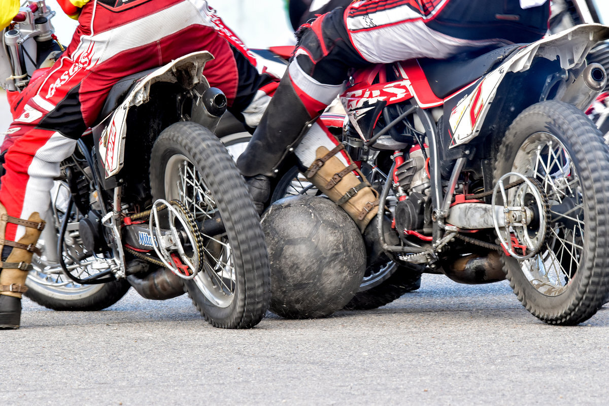 Самым простым и правильным определением мотобола будет - «футбол на мотоциклах». Стоит отметить, что мотоциклы зачастую используются для кросса или туризма, но с небольшой модификацией рычагов управления. На мотобольном мотоцикле есть дублирующая лапка заднего тормоза, модификация переднего колеса дугами – для ведения мяча, и «плуги» во избежание падения. Футбольный мяч довольно внушительных размеров. В каждой команде по 5 участников (1 вратарь и 4 полевых игрока на мотоциклах). Зоны перемещения игроков довольно ограничены – для вратаря это 5,75 метров радиус от ворот, а для игроков это само поле за исключением зоны вратаря. Само поле имеет габариты схожие с футбольным, только не с грунтовым покрытием, а с асфальтовым или гаревым. Асфальт посыпают песком для улучшения маневренности мотоцикла. По сравнению с футбольным полем на мотобольном нет круга в центре. В наше время этот вид спорта не так популярен, так как аудитории больше интересен мотокросс или фристайл. Однако каждый год по