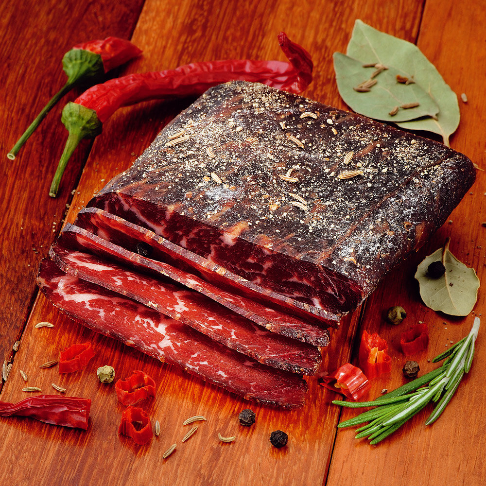 Деликатес бастурма завоевал сердца многих граждан. И это очень хорошо. Но, вот к сожалению, часто грешат производители и на выходе продукт бывает не соответствует своему названию. Да и цена на готовую продукцию не маленькая. А попробуем мы сами сделать бастурму! Лучше всего бастурму делать из говядины, и мясо нужно брать свежее (не замороженное), без прожилок, плёнок и жира, в идеале, конечно, филейная часть (мякоть спинной части). Нам понадобится: Говядина (филе, или мякоть без жил) — 1,5 кг, Соль — 1 пачка, Чаман — 0,5 стакана, Паприка молотая — 3 ст.л., Тмин молотый — 3 ст.л., Кориандр молотый — 3 ст.л., Аджика — 3 ст.л. Вода кипячёная комнатной температуры—2 стакана. На дно чашки высыпать часть соли, положить куски мяса и сверху засыпать оставшейся солью. Чашку с мясом убрать в холодильник на три дня. Если будет выделяться сок, обязательно сливать его, а мясо переворачивать хотя бы раз в день. После того как мясо просолилось, хорошо промыть его под проточной водой и обсушить ку