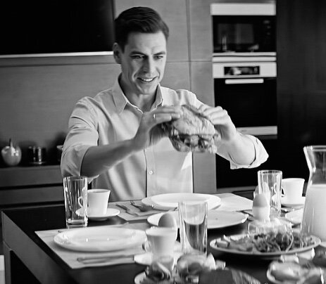 Здравствуйте, дорогие читатели! Продолжаю тему рекламы и позора наших актёров. Видели «сериал» о колбасе, которую с упоением кушает Дмитрий Дюжев, цитируя А.П.Чехова? А недавний клип, где Дюжев пародирует рэперов и, опять-таки, вкушает колбасу, рекламируя её. Смешно и грустно. Поговорим о рекламных сериалах и о Дмитрие. Приятного чтения! Я уже много писал о рекламе и хороших актёрах в ней. Но меня так удивил Дмитрий Дюжев, что не могу удержаться. Сижу и пишу статью про советских актёров, фоном работает телевизор, начинается реклама - слышу голос Дмитрия, хвалящего колбасу. Следующим же рекламным роликом идёт лекарство, которое также рекламирует Дюжев. Две подряд, я не придумываю. Прям как-то обидно стало за хорошего артиста. Вспомнил смешной случай, когда по телевизору активно шла реклама фильма «Иван Поддубный» с Михаилом Пореченковым в главной роли. Идёт рекламный ролик, где пафосный голос приглашает всех в кинотеатры на премьеру о боксёре, а сразу после этой рекламы, начинается ро