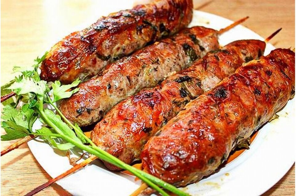 Люля-кебаб (тюрк.lula — трубка и араб. kebab — жареное мясо) — популярное в странах Азии, Закавказья и Ближнего Востока блюдо из мясного фарша, который в виде продолговатых котлет или колбасок нанизывают на шампуры и жарят на мангале. Обычно для кебабов используют баранину, реже — свинину, говядину или смесь разных видов мяса, а также птицу, рыбу и морепродукты. Какое бы мясо вы не предпочли, оно должно быть свежим, не подвергавшимся замораживанию. Мясо должно быть довольно жирным, в фарш также добавляют большое количество репчатого лука (1 /3 часть от количества мяса), но, в отличие от котлет, не кладут ни яиц, ни хлеба. Из специй чаще используется перец, базилик, кинза и чеснок. А в составе настоящего узбекского кебаба обязательно должно присутствовать курдючное сало и приправа зира. Чтобы фарш хорошо держался на шампурах и не разваливался на мангале, мясо режут на очень маленькие кусочки. Не используйте мясорубку! Традиционные плоские шампуры подходят для люля-кебаба не лучшим обр
