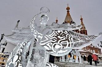 Сегодня, крещенским утром, у Михаило-Архангельского кафедрального собора города Ижевска состоялось открытие парка ледовых скульптур и награждение участников Ледового фестиваля Ангелов и Архангелов.