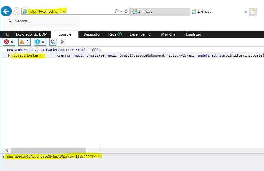 В Javascript при использовании работника службы с большим двоичным объектом, только для IE, когда я не использую локальный режим с автономным файлом (c: \ test.html), возникает ошибка. Вы можете смоделировать с помощью кода ниже: новый работник (URL.createObjectURL (новый Blob ([""]))); http://q-answer.ru/questions/oshibka-lokal-nogo-fayla-pri-ispol-zovanii-serviceworker-s-b-35398.html
