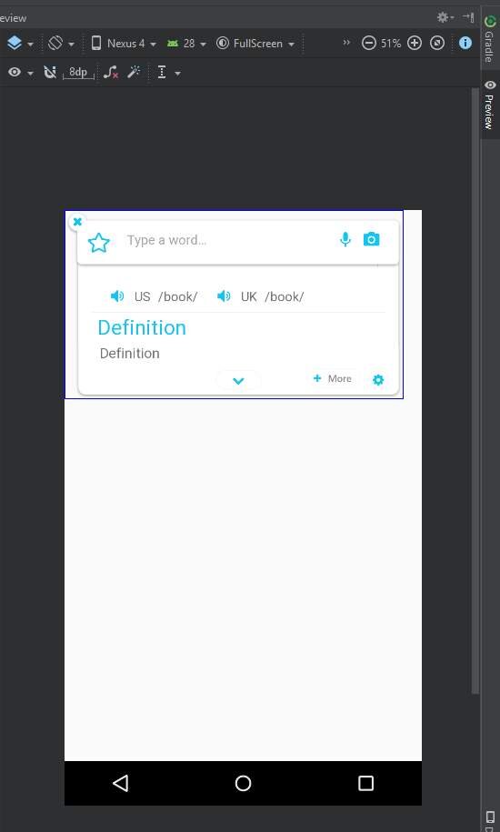 Я использую Сервис , чтобы показать наложение View , даже если мое приложение закрыто. но этот макет не показывает никакого TextView . В Android Studio Preview мой макет выглядит так: http://q-answer.ru/questions/android-maket-sluzhby-ne-pokazyvayuschiy-nikakogo-textview-n-22154.html