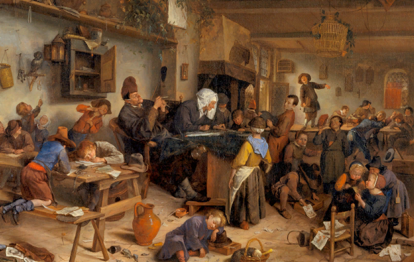 Насилие - неотъемлемая часть обучения. Отличия средневековых школ начинаются с того, что школы были исключительно для мальчиков, девочкам приоритетней было умение вести хозяйство, а читать и писать для этого не нужно. Но не каждый пацанёнок ходил в школу, такую возможность могли позволить лишь богатые сословия, т.к. все школы были платными. Школьная тематика была направлена на религию, т.к. школы были устроены при церквях. Учили в основном молитвы и те, лишь на латинском языке, затем учили их правильно писать. Большой ценностью являлись книги. Они были в дефиците и весь класс мог обучаться только по одному учебнику, учителю приходилось подходить к каждому ученику лично. Из-за этого страдала дисциплина в классе, часты были случаи, когда дети шумели, но в средние века не заморачивались на счет правильности методов воспитания. Слишком шумных детей просто били розгами. Били даже без повода, чисто для профилактики. В средние века являлось очень почетным быть грамотным, т.к. весь процесс обу