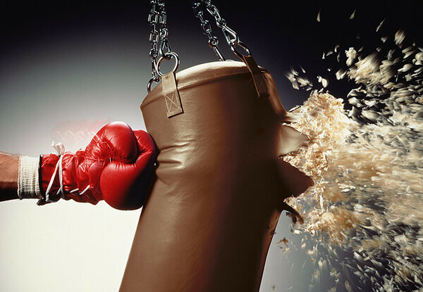 Для того, чтобы бить сильно и мощно нужно тренироваться. Сегодня я покажу и расскажу про три простых упражнения, с помощью которых вы сможете увеличить силу своего удара. Для этого нам понадобится незамысловатый тренажер: Что это? Обычный гриф, на котором приварен груз. Очень простое сооружение, но зато как эффективно при тренировке силы удара! Первое упражнение. Берем гриф в ударную руку и становимся вот в такую стойку: Задняя нога становится на носочек, пятка оторвана. Колени всегда немножко согнуты и запружинены. Спина ровная. Руку держите около плеча так, как вы обычно держите ее при блоке. С толчка ноги и с выкручиванием стопы выкидываем гриф вперед. Свободная рука не расслабляется. При ударе ударной она уходит к подбородку. После выполнения становимся в исходную позицию. Помните, что это упражнение на взрывную силу, и именно поэтому вам нужно делать его быстро. Нужно именно выкидывать гриф, а не медленно подымать. Вот как это должно выглядеть: Данное упражнение желательно повторя