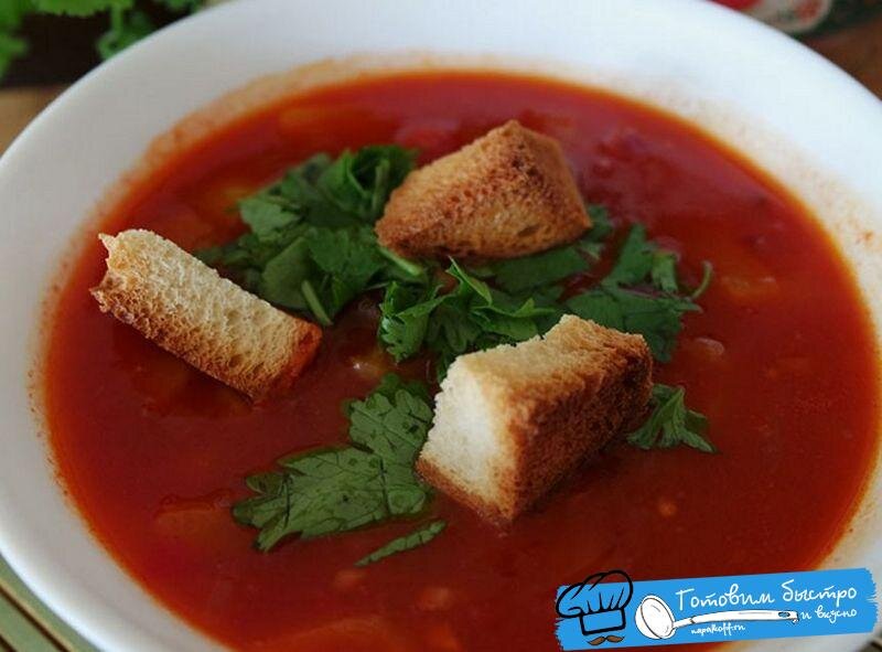 Если вы хотите быстро приготовить вкусный, ароматный суп на обед, то воспользуйтесь моим пошаговым рецептом быстрого приготовления первого блюда. Томатный суп с цукини готовится очень быстро. К этому супу можно подать гренки, для этого нарежьте кубиками несколько ломтиков батона и обжарьте на сковороде в двух столовых ложках сливочного или растительного масла до образования хрустящей корочки. Если вы планируете разогревать суп вторично, то добавляйте сливки не в кастрюлю, а в тарелку. Ингредиенты для приготовления томатного супа с цукини: 1. 6 крупных, сладких, красных помидоров. 2. 1 стакан апельсинового сока. 3. Соль (по вкусу). 4. Чёрный молотый перец. 5. Одна столовая ложка томатной пасты. 6. Одна столовая ложка коричневого сахара. 7. Один средний цукини (300-400г). 8. Один пучок петрушки. 9. Один стакан сливок (не менее 30% жирности). Приготовление томатного супа с цукини: 1. Помидоры вымыть, ошпарить, очистить от кожицы и мелко нарезать. 2. В кастрюлю выложить помидоры, влить апе