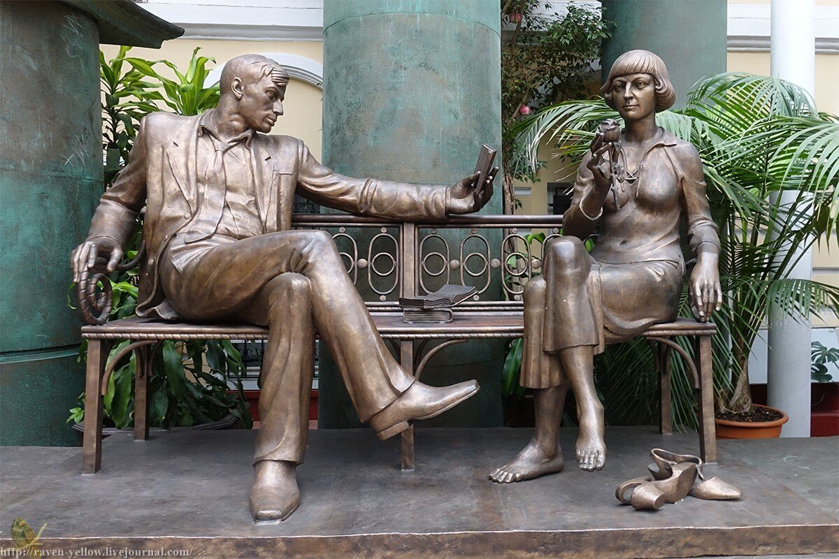 Памятник Б. Пастернак снимает на смартфон М. Цветаеву - в 1940-м году